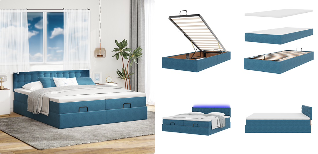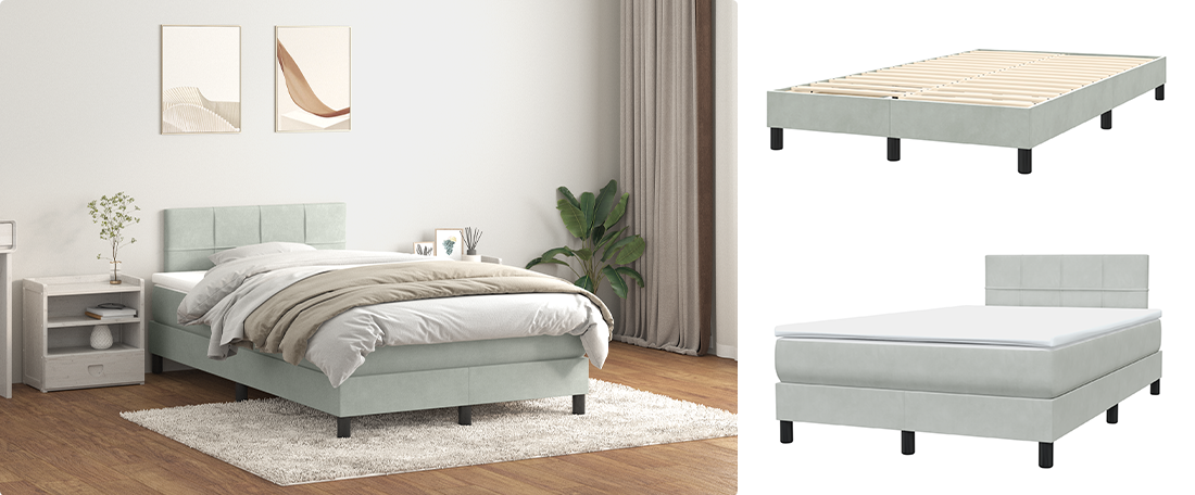 Tämä sänkysarja sisältää sängynrungon, pussijousipatjan ja pehmeän patjatopparin täydellistä mukavuutta varten. Samettinen runko lisää kodikkuutta, kun taas pussijouset tarjoavat henkilökohtaista tukea ja vähentävät liikehäiriöitä. Laudatettu pohja tarjoaa lisää hengittävyyttä, pitäen patjasi raikkaana. Tämä on täydellinen kokonaispaketti rauhallisiin öihin.