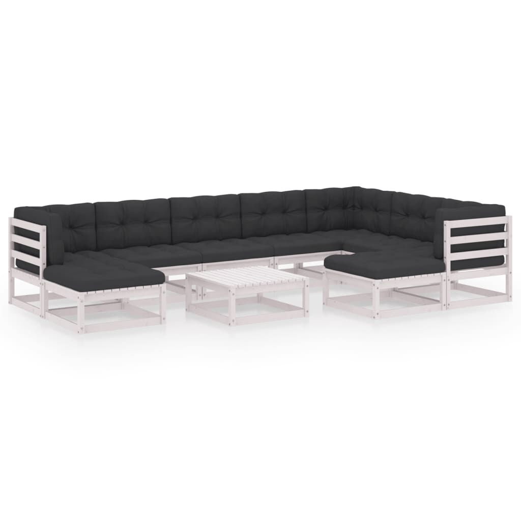 vidaXL 10-osainen Puutarhasohvasarja tyynyillä valkoinen täysi mänty