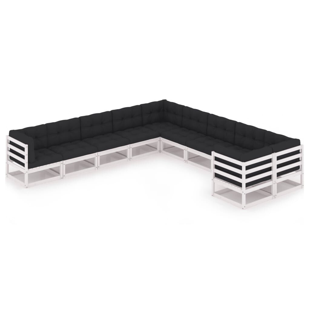 vidaXL 10-osainen Puutarhasohvasarja tyynyillä valkoinen täysi mänty