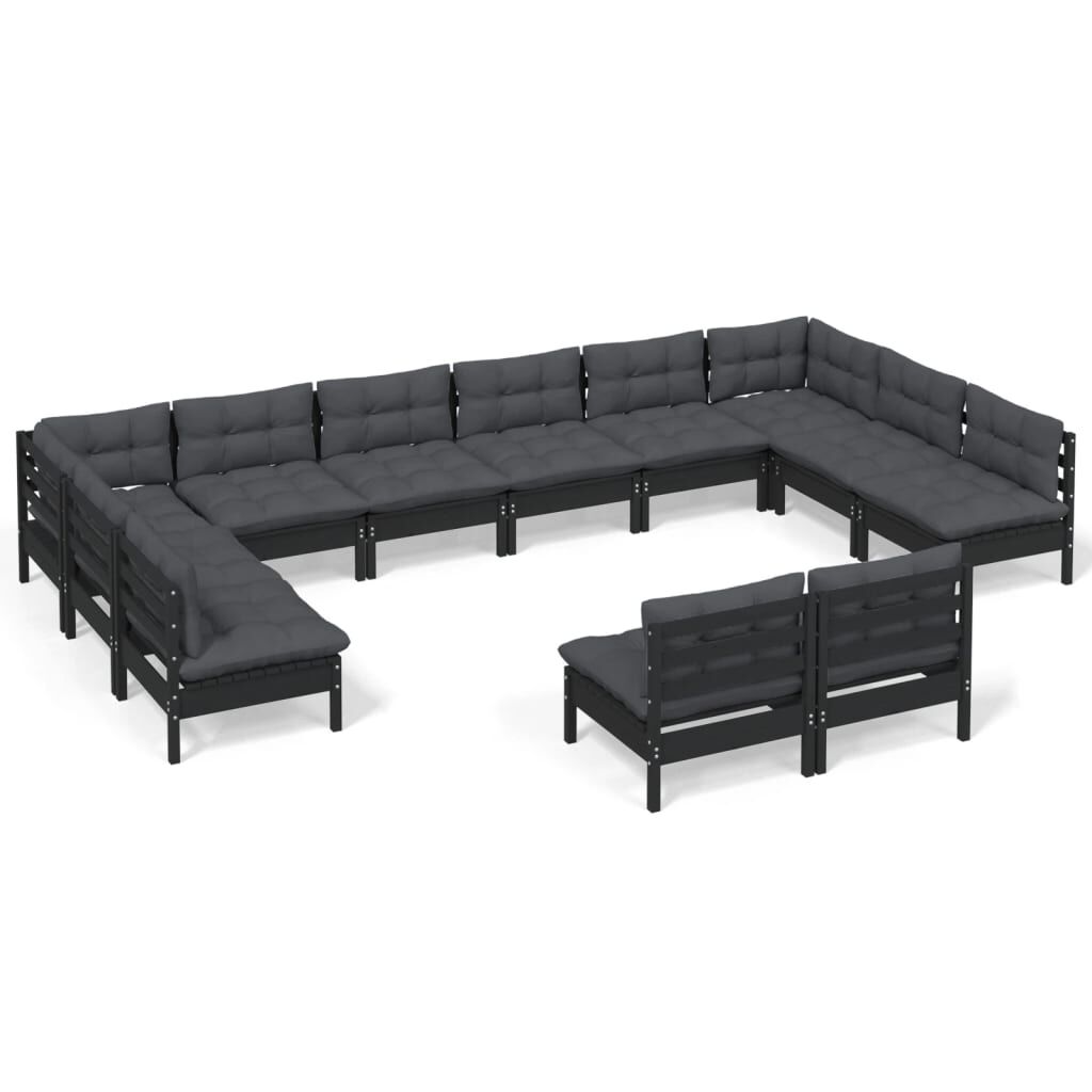 vidaXL 12-osainen Puutarhasohvasarja harmaat musta täysi mänty