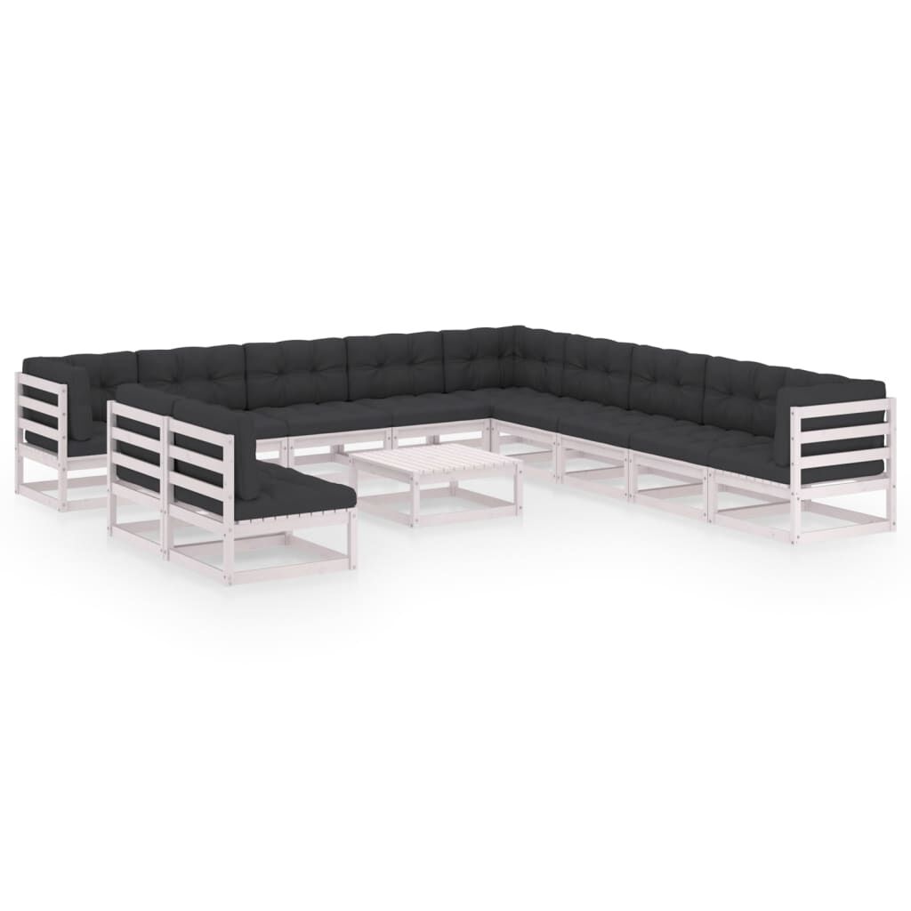 vidaXL 12-osainen Puutarhasohvasarja tyynyillä valkoinen täysi mänty