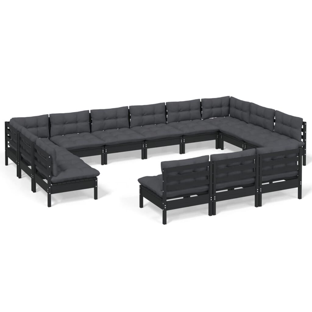 vidaXL 13-osainen Puutarhasohvasarja tyynyillä musta täysi mänty