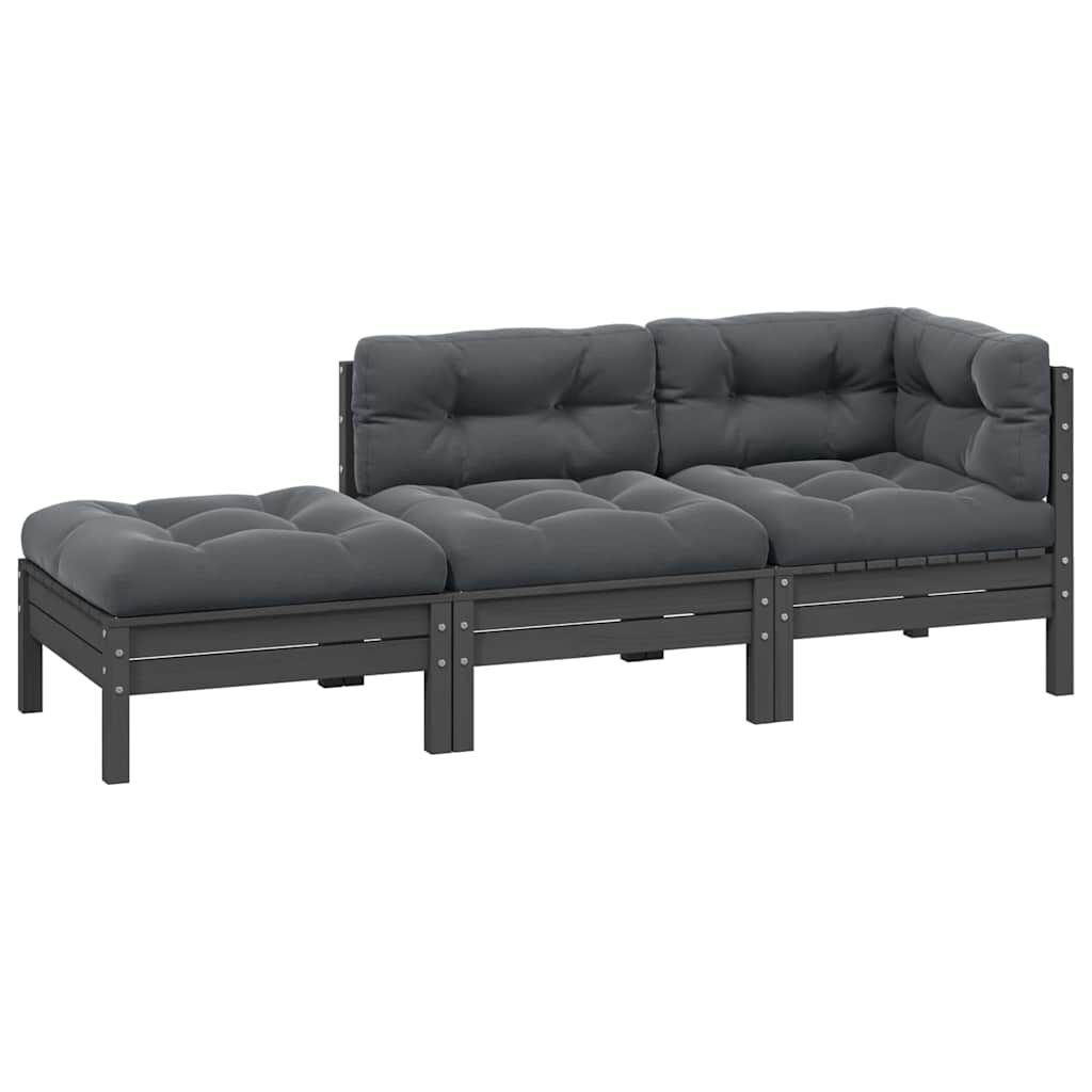 vidaXL 3-osainen Puutarhasohvasarja tyynyillä harmaa täysi mänty