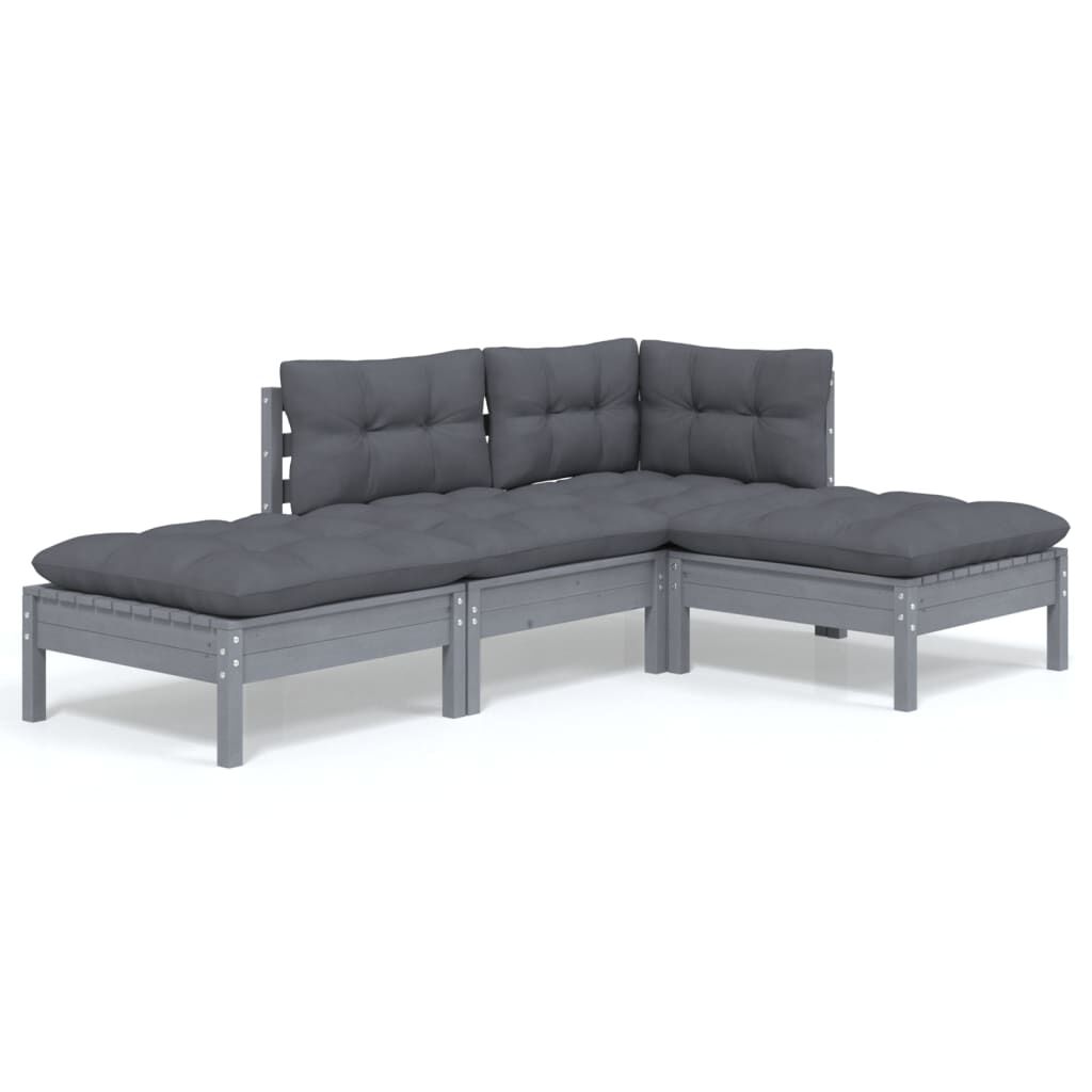 vidaXL 4-osainen Puutarhasohvasarja tyynyillä täysi mänty