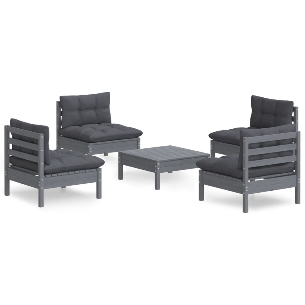 vidaXL 5-osainen Puutarhasohvasarja antrasiitti tyynyt mänty