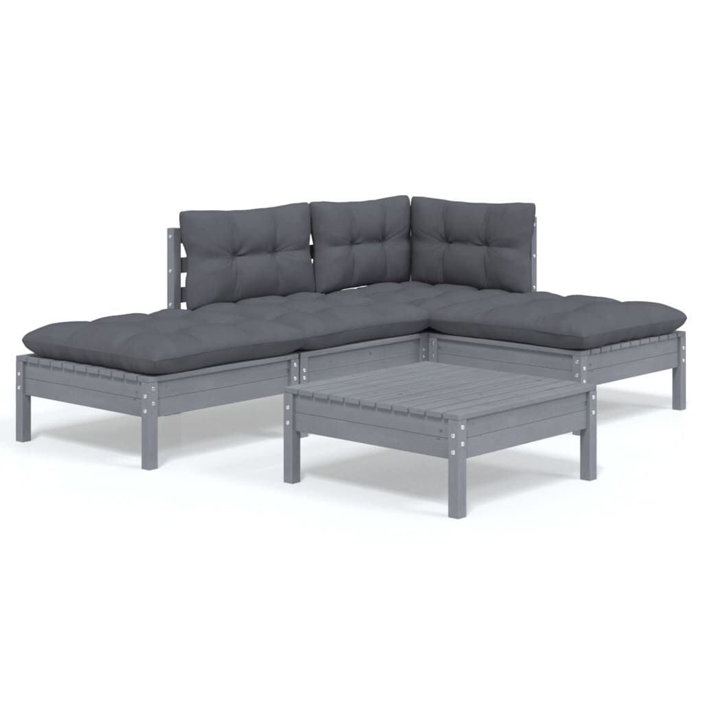 vidaXL 5-osainen Puutarhasohvasarja tyynyillä harmaa mänty