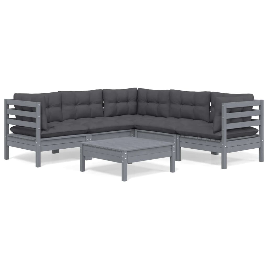 vidaXL 6-osainen Puutarhasohvasarja tyynyillä harmaat täysi mänty