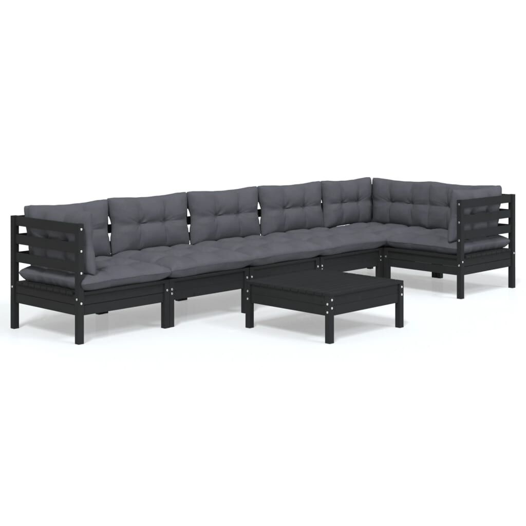 vidaXL 7-osainen Puutarhasohvasarja tyynyillä musta mänty