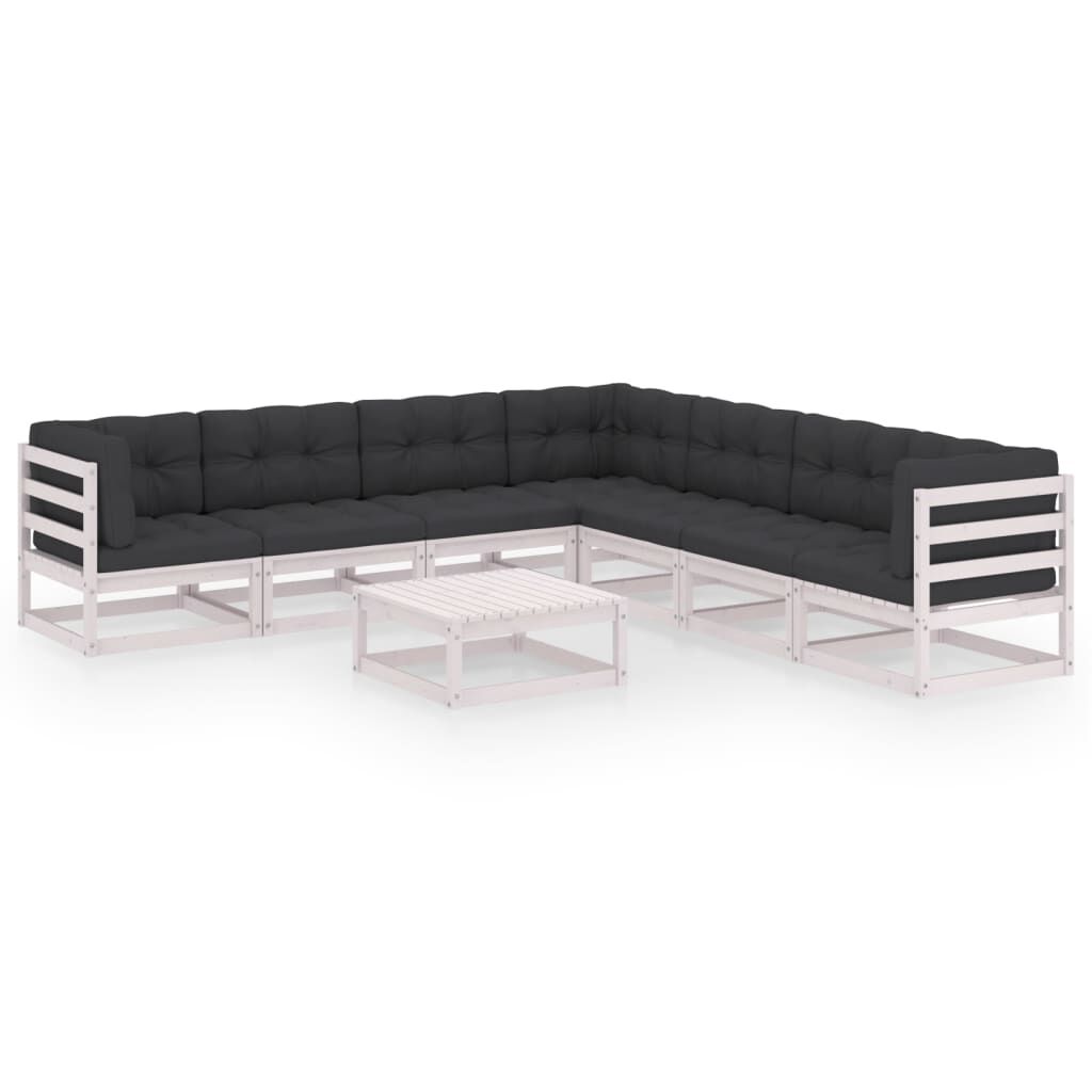 vidaXL 8-osainen Puutarhasohvasarja tyynyillä valkoinen täysi mänty