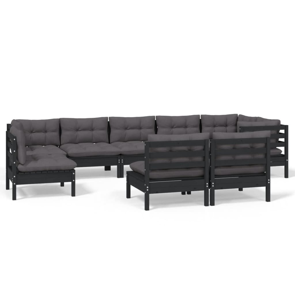 vidaXL 9-osainen Puutarhasohvasarja tyynyillä musta täysi mänty