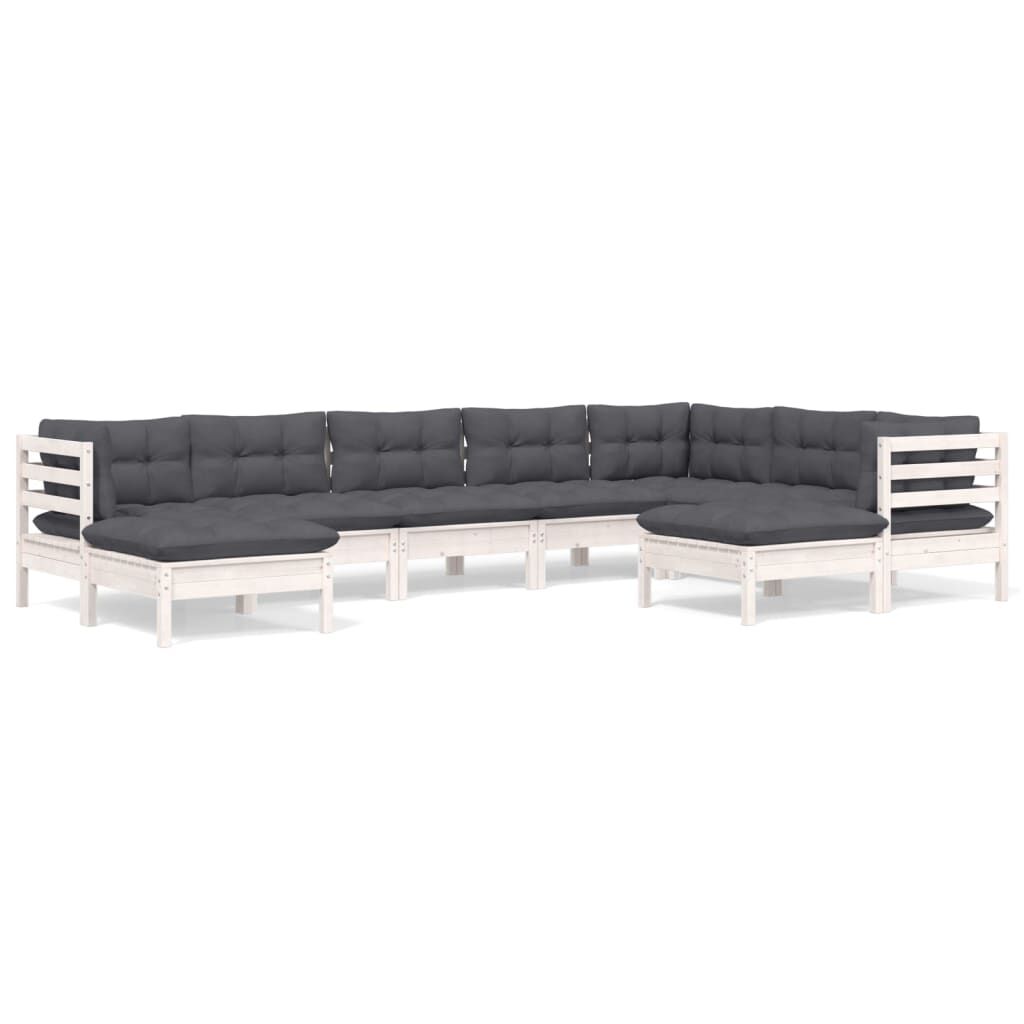 vidaXL 9-osainen Puutarhasohvasarja tyynyillä valkoinen täysi mänty