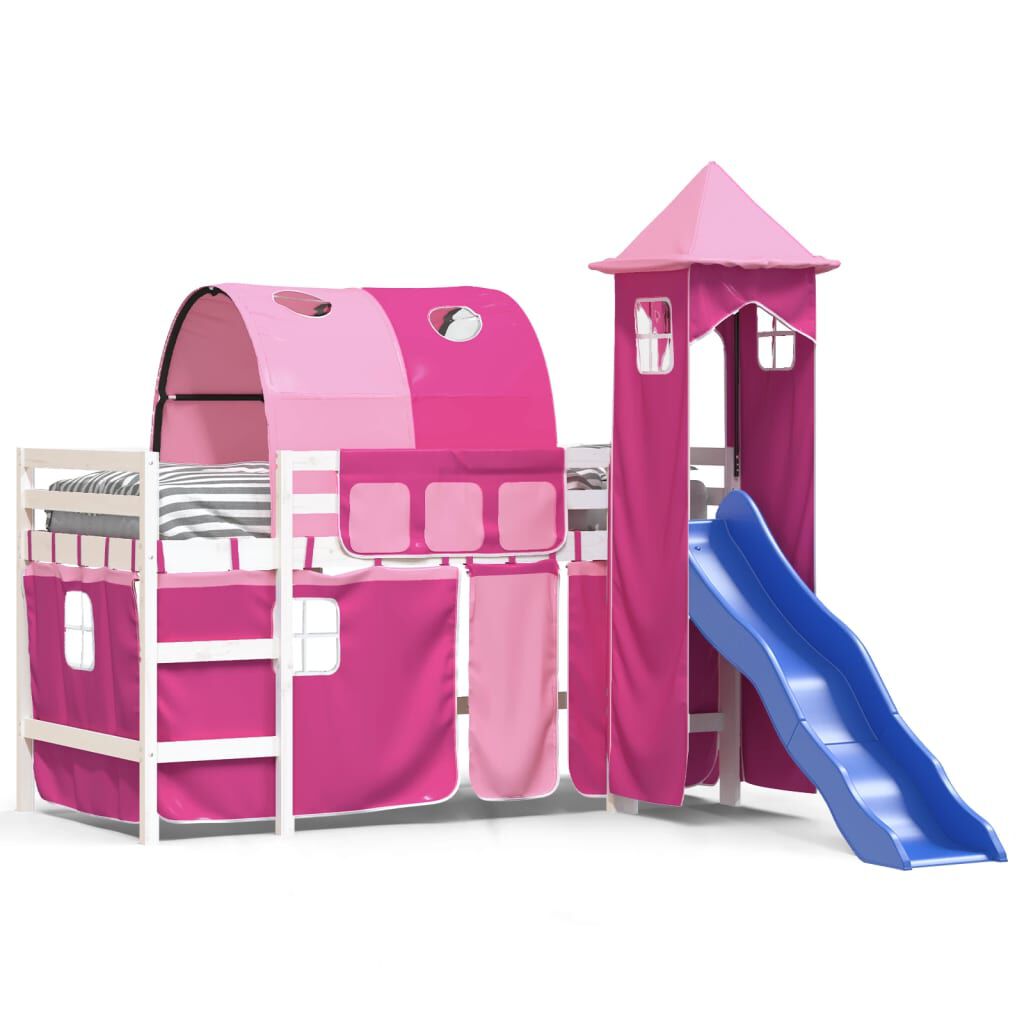 vidaXL Lasten parvisänky tornilla pinkki 90x200 cm täysi mänty
