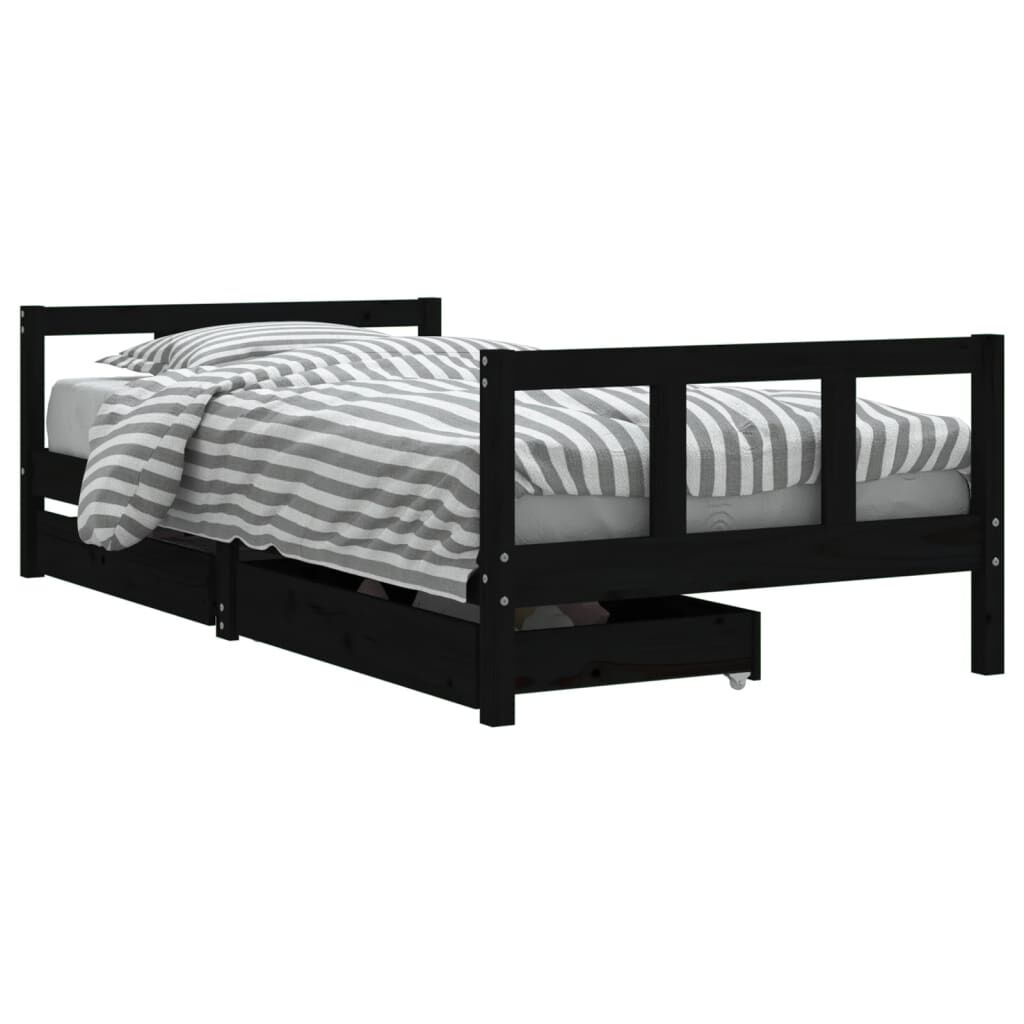 vidaXL Lasten sängynrunko laatikoilla musta 90x190 cm täysi mänty
