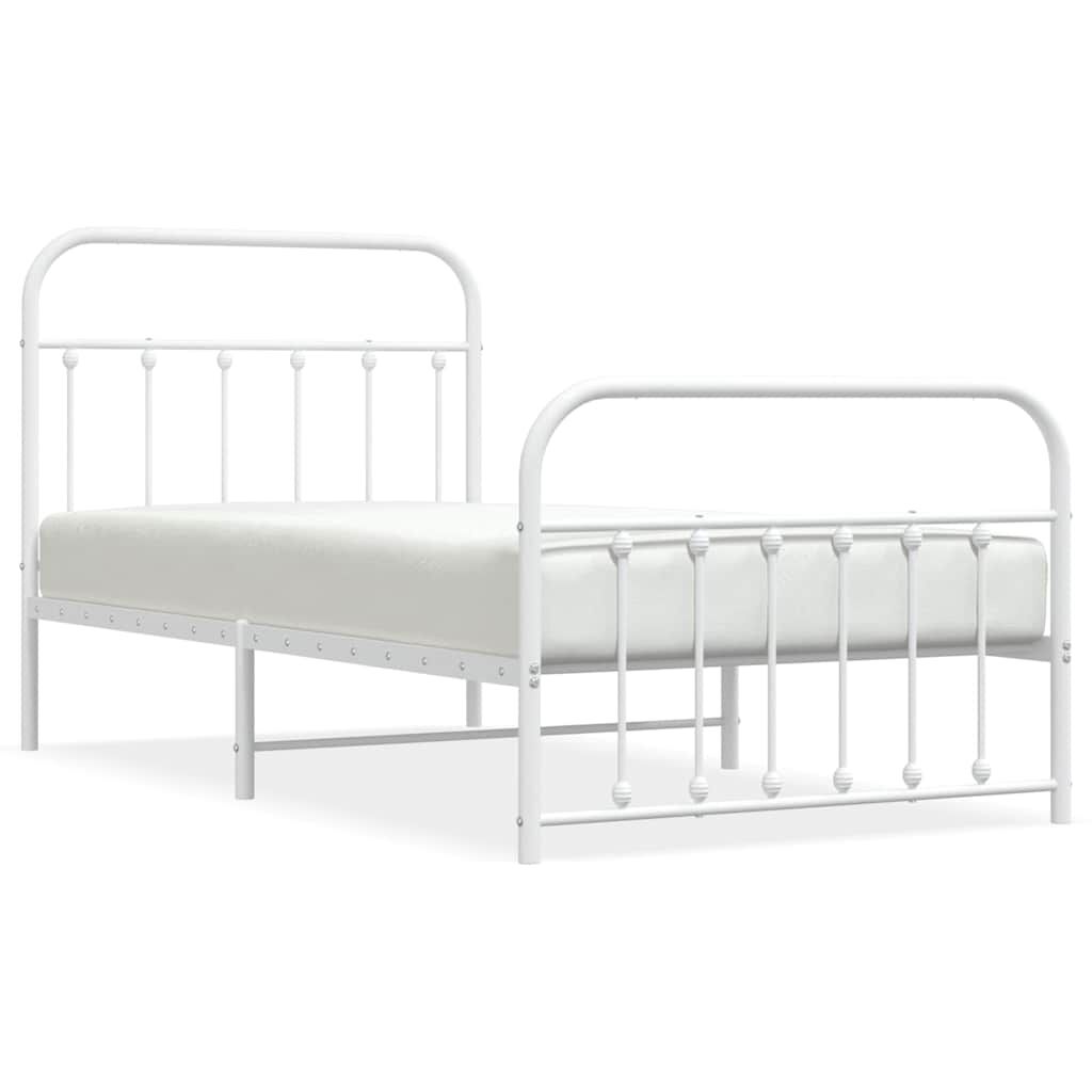 vidaXL Metallinen sängynrunko päädyillä valkoinen 100x190 cm