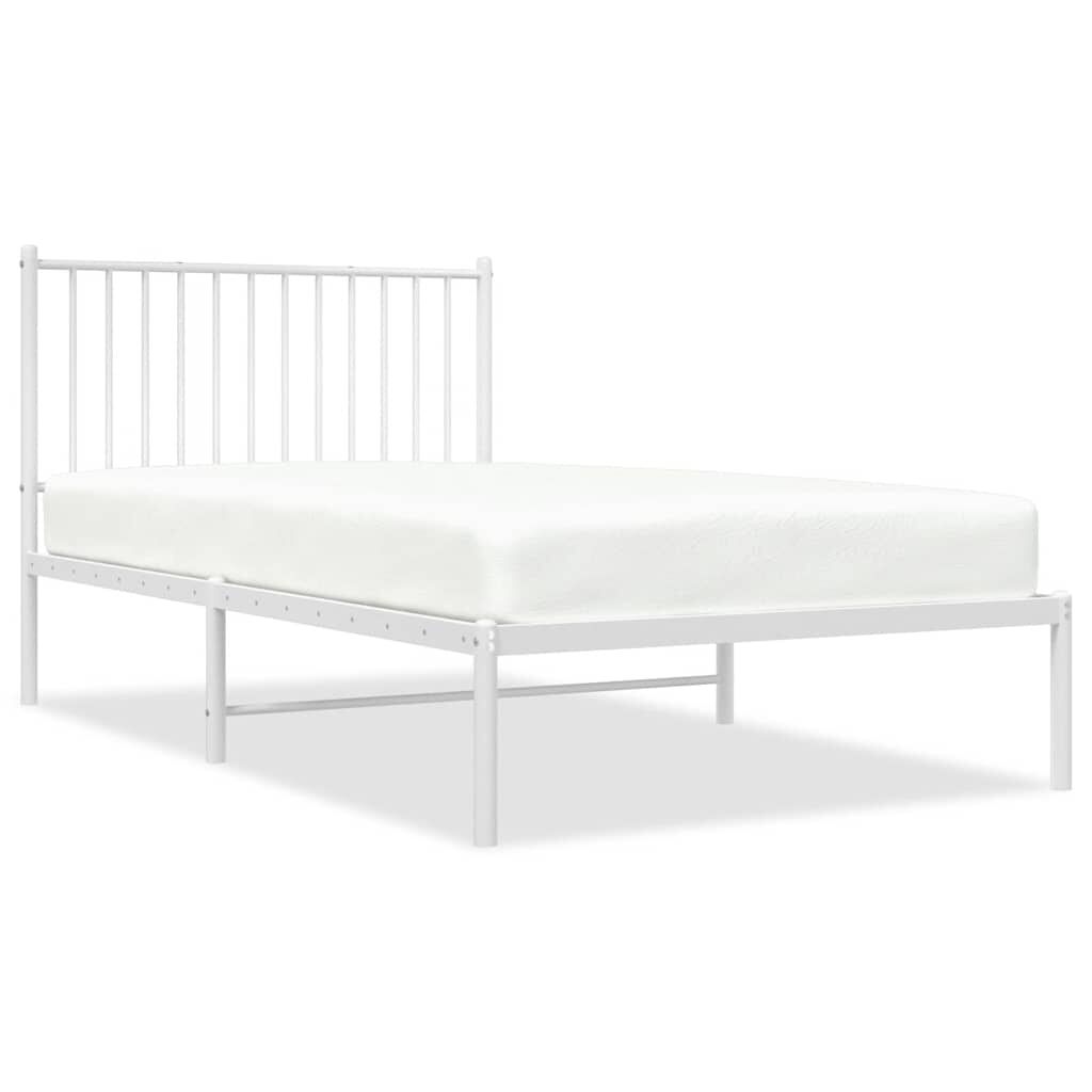 vidaXL Metallinen sängynrunko päädyllä valkoinen 100x190 cm