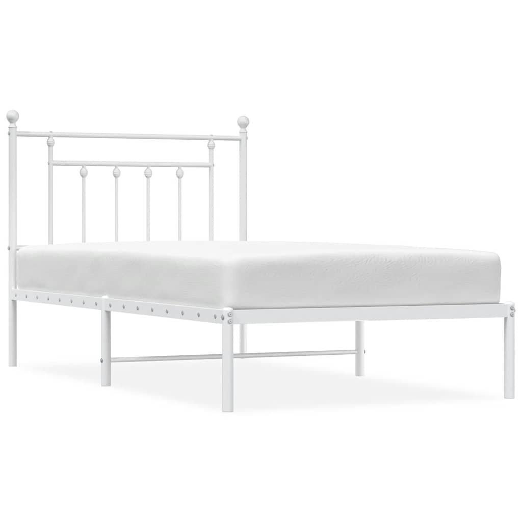 vidaXL Metallinen sängynrunko päädyllä valkoinen 100x190 cm