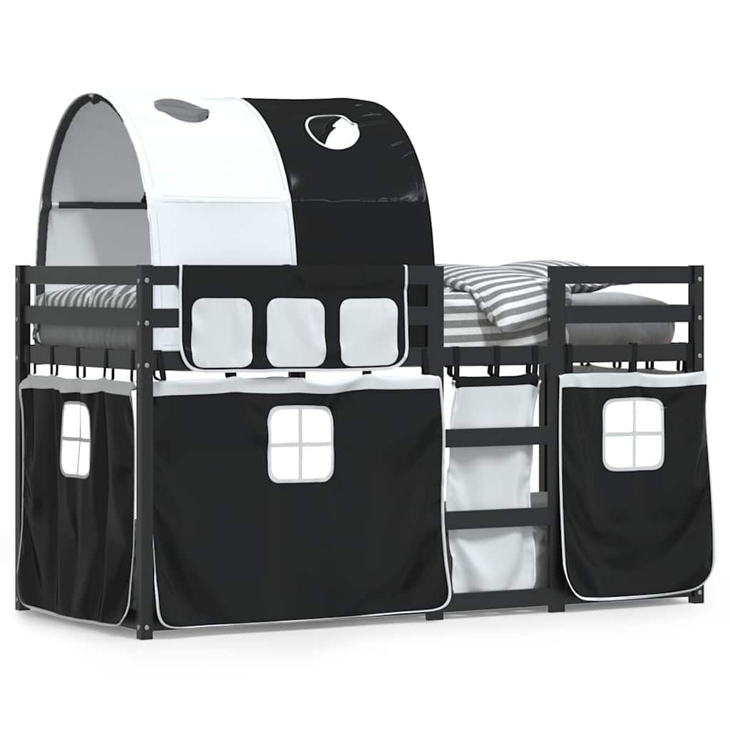 vidaXL Parvisänky verhoilla mustavalkoinen 90x190 cm täysi mänty