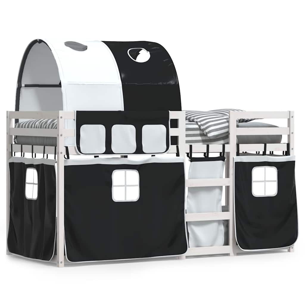vidaXL Parvisänky verhoilla mustavalkoinen 90x190 cm täysi mänty
