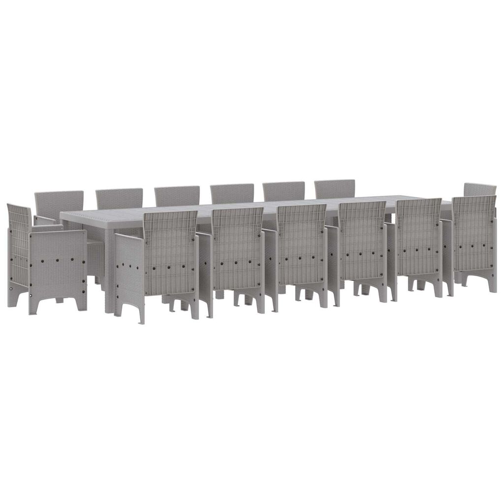 Esittelyssä moderni puutarhakalustesarja, tyylikäs ratkaisu ulkokäyttöön, joka tuo tyyliä ja toimivuutta mihin tahansa puutarhaan tai terassille. Tämä elegantti sarja esittelee puhtaita linjoja ja minimalistista estetiikkaa, tarjoten täydellisen paikan al fresco -ateriaelämyksille. Sen sileä tekstuuri ja matta pinta parantavat ulkotilojen visuaalista viehätystä, tarjoten sulavalinjaisen modernin ilmeen, joka täydentää erilaisia puutarhasuunnitelmia.