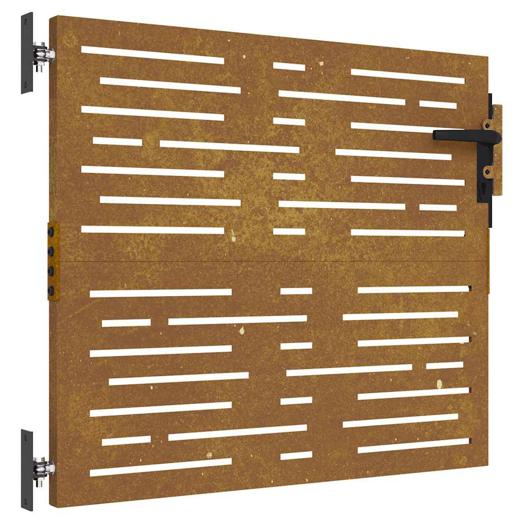- Kestävä materiaali: Metalliportti on valmistettu corten teräksestä, joka tunnetaan myös nimellä säänkestävä teräs. Se on luonteeltaan korroosionkestävä ja se kehittää ruosteisen suojakerroksen korroosiota vastaan ilmakehän olosuhteille altistuessaan. Siksi sinun ei tarvitse maalata sitä. Tämä säästää hoito- ja korjauskustannuksissa. Corten teräksen erottuva ruskea väri on taattu katseiden vangitsija. Säänkestävä teräs on poikkeuksellisen kestävä materiaali ja se kestää myös ajan patinaa.