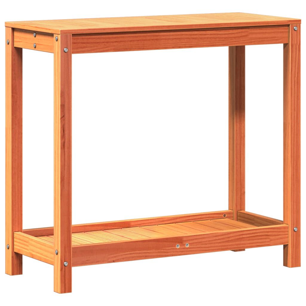 vidaXL Ruukutuspöytä hyllyllä vahanruskea 82,5x35x75 cm täysi mänty