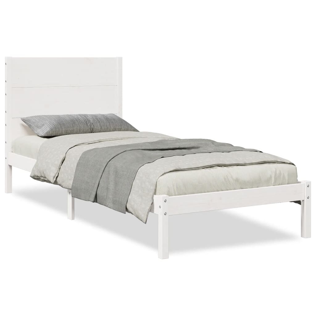 vidaXL Sängynrunko erikoispitkä ei patjaa valk. 100x220 cm massiivipuu