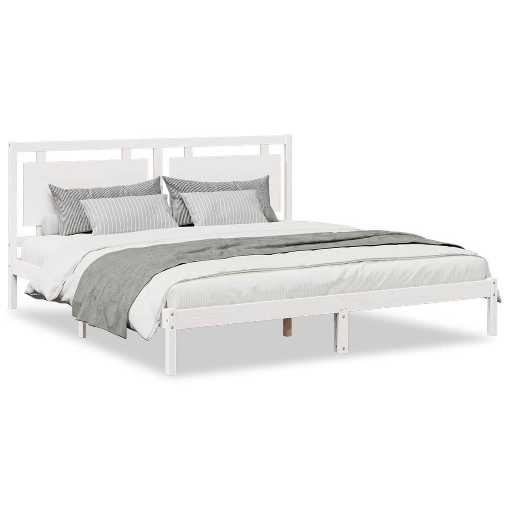 vidaXL Sängynrunko erikoispitkä ei patjaa valk. 200x210 cm massiivipuu
