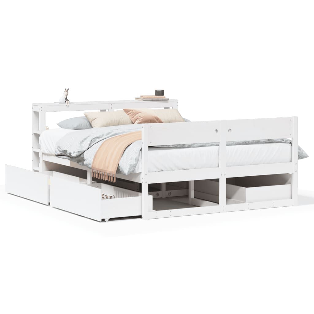 vidaXL Sängynrunko ilman patjaa valkoinen 135x190 cm täysi mänty