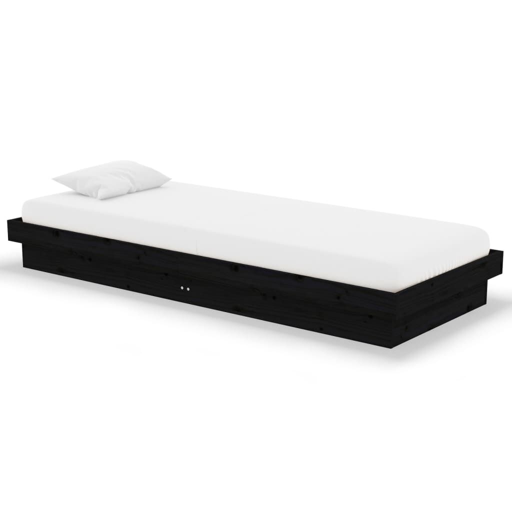 vidaXL Sängynrunko musta täysi puu 75x190 cm Small Single