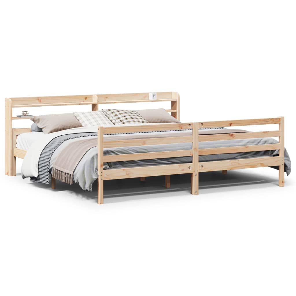 vidaXL Sängynrunko päädyllä 200x200 cm täysi mänty