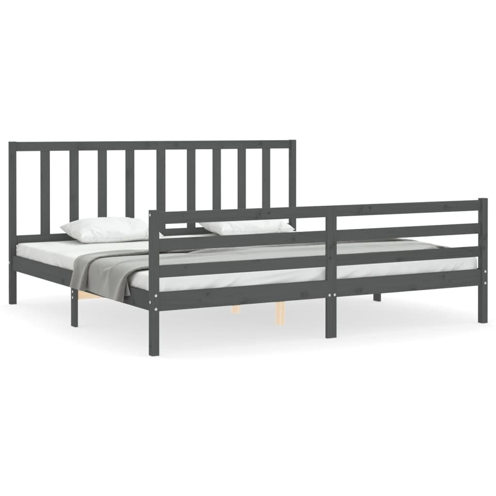 vidaXL Sängynrunko päädyllä harmaa 200x200 cm täysi puu