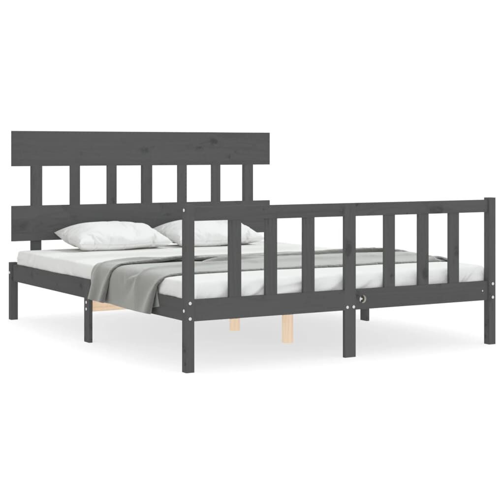 vidaXL Sängynrunko päädyllä harmaa King Size täysi puu