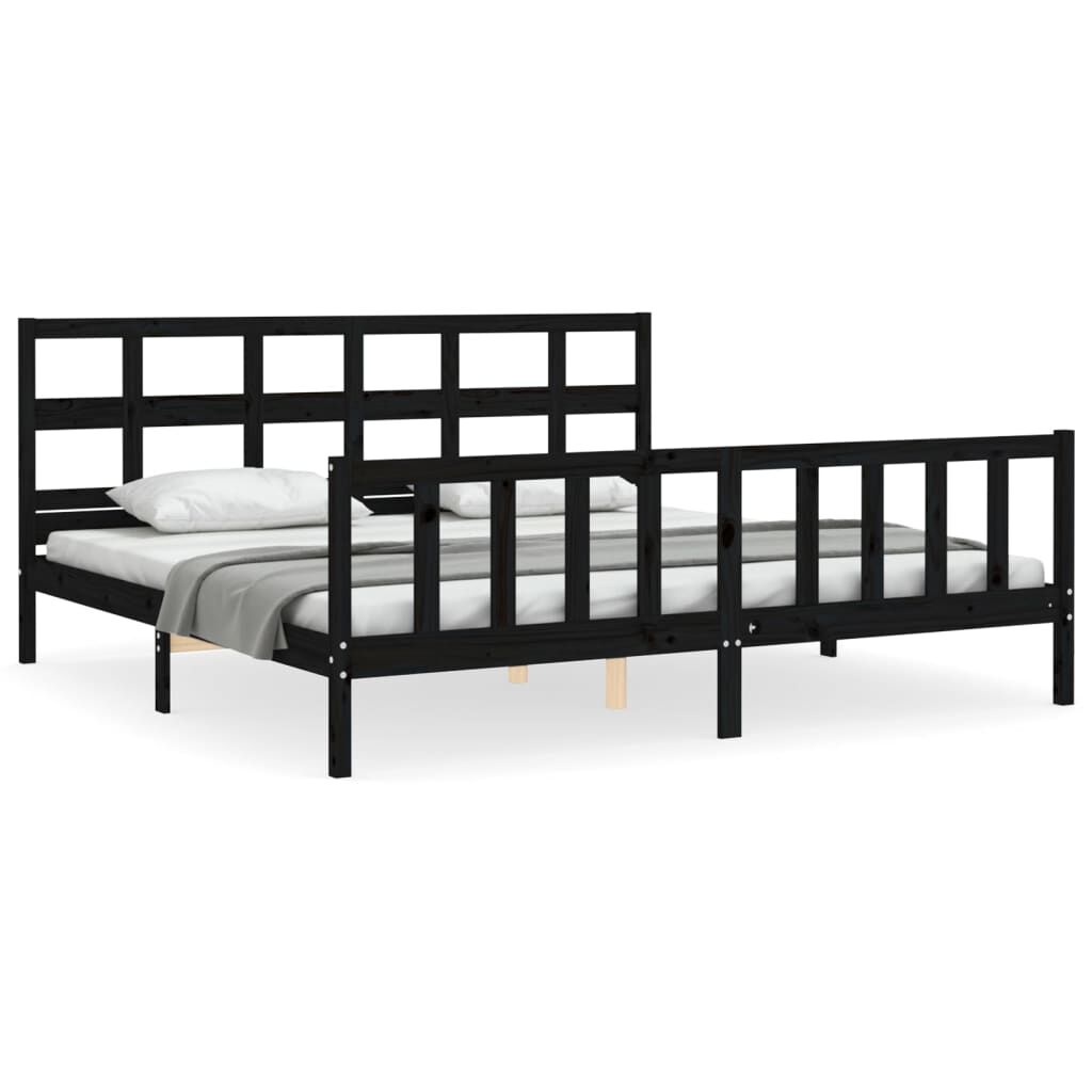 vidaXL Sängynrunko päädyllä musta 200x200 cm täysi puu