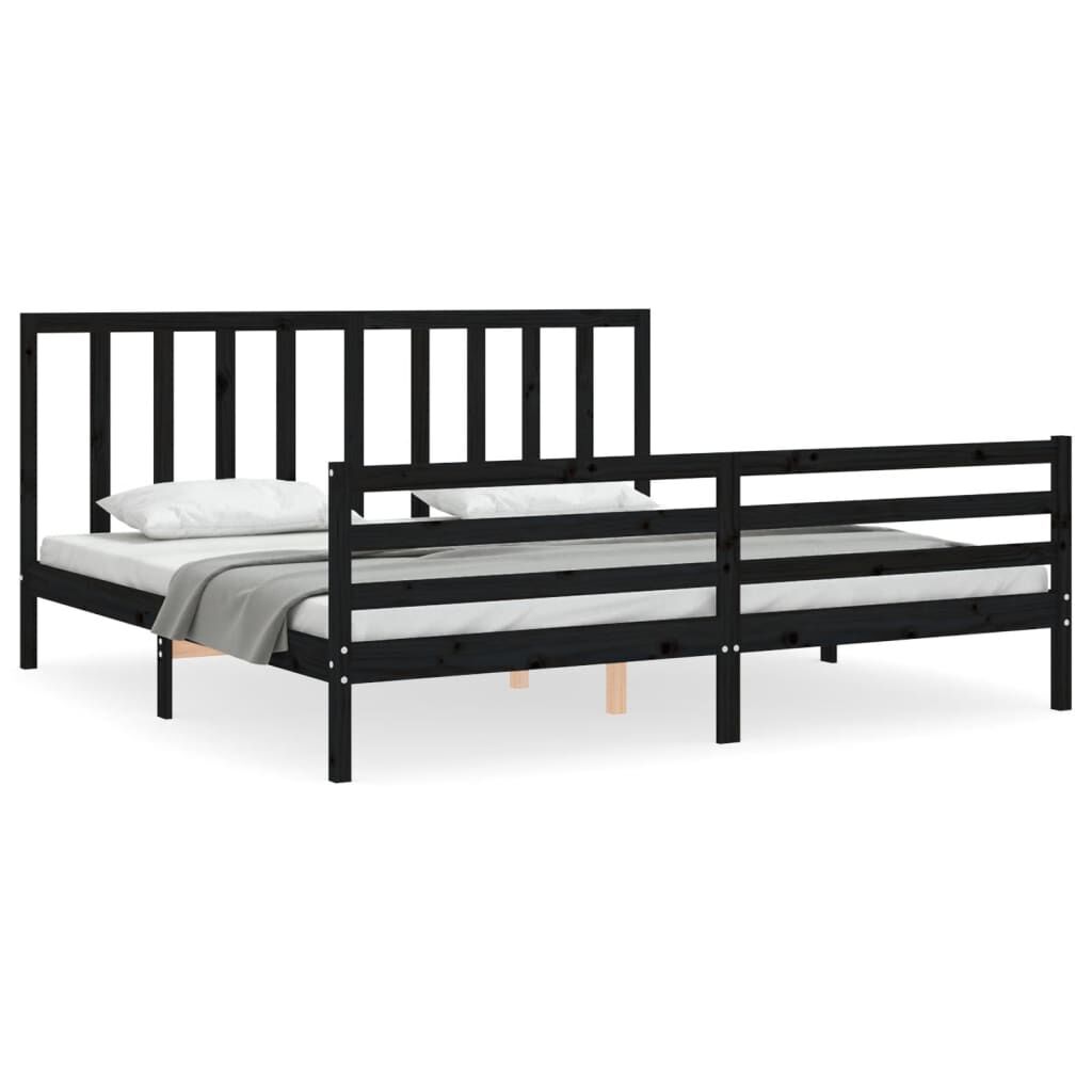 vidaXL Sängynrunko päädyllä musta 200x200 cm täysi puu