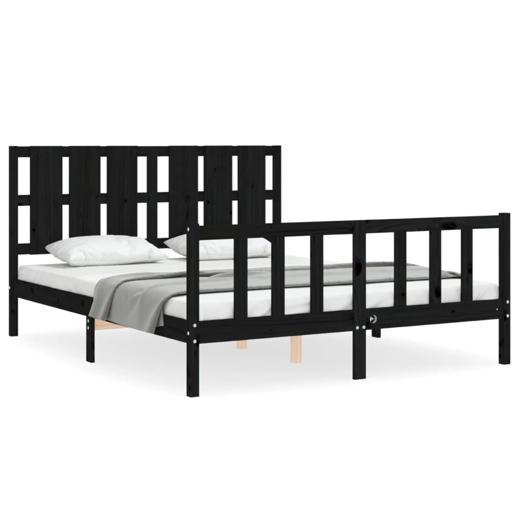 vidaXL Sängynrunko päädyllä musta King Size täysi puu