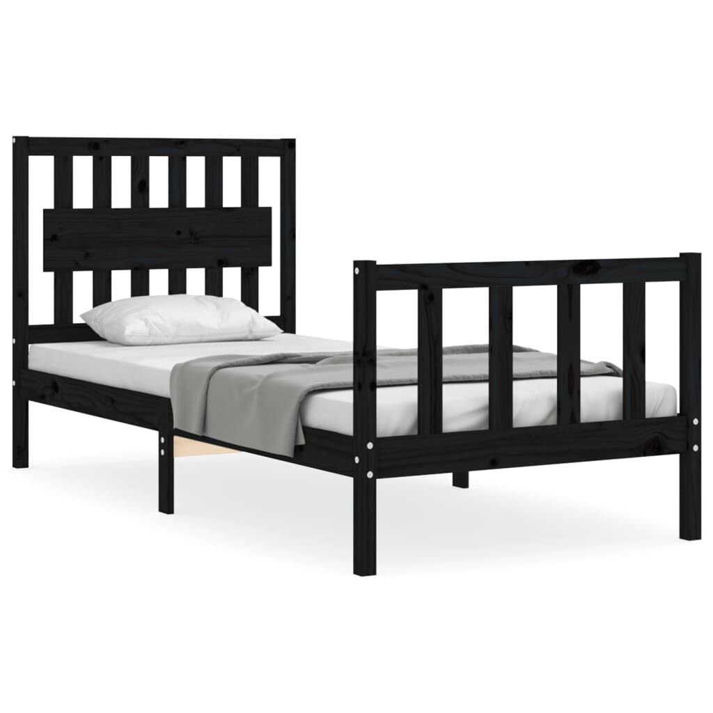 vidaXL Sängynrunko päädyllä musta Single täysi puu