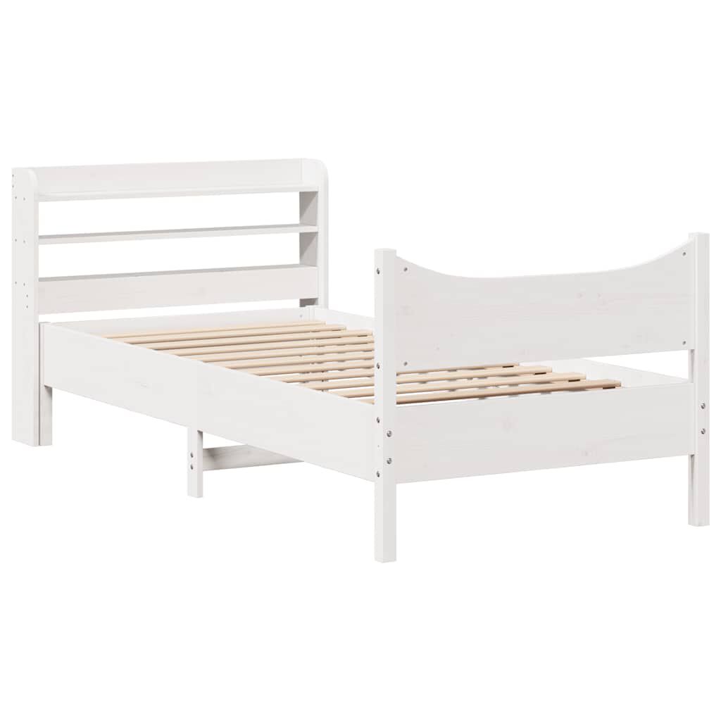 vidaXL Sängynrunko päädyllä valkoinen 75x190 cm täysi mänty