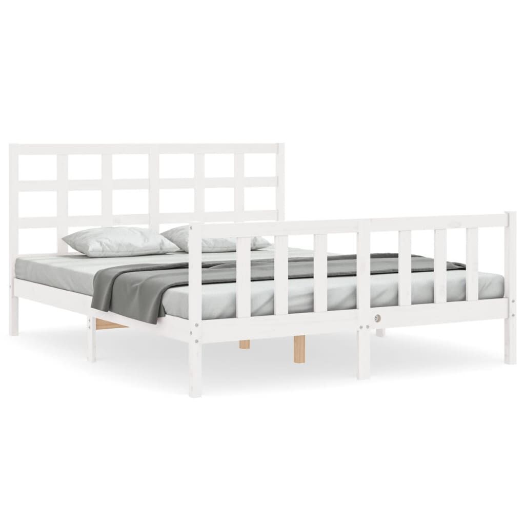 vidaXL Sängynrunko päädyllä valkoinen King Size täysi puu