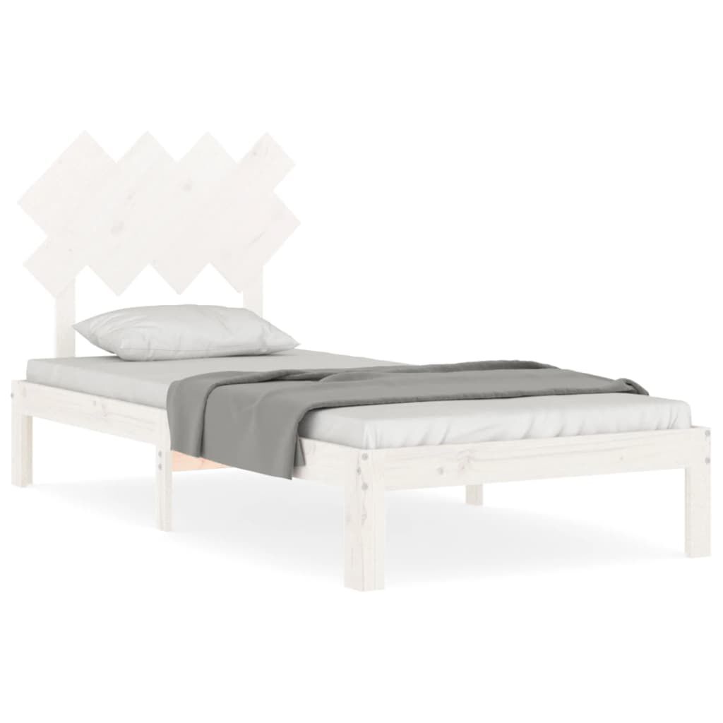 vidaXL Sängynrunko päädyllä valkoinen Single täysi puu