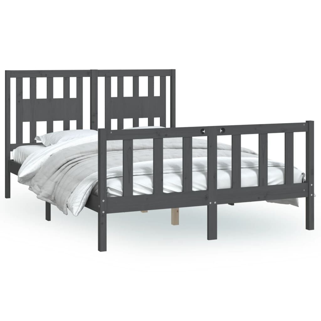 vidaXL Sängynrunko päätylevyllä harmaa 120x200 cm täysi mänty