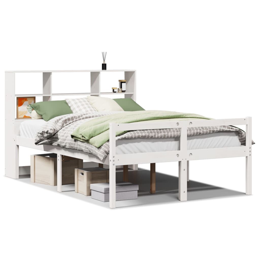 vidaXL Sänky kirjahyllyllä ei patjaa valkoinen 120x200 cm täysi mänty