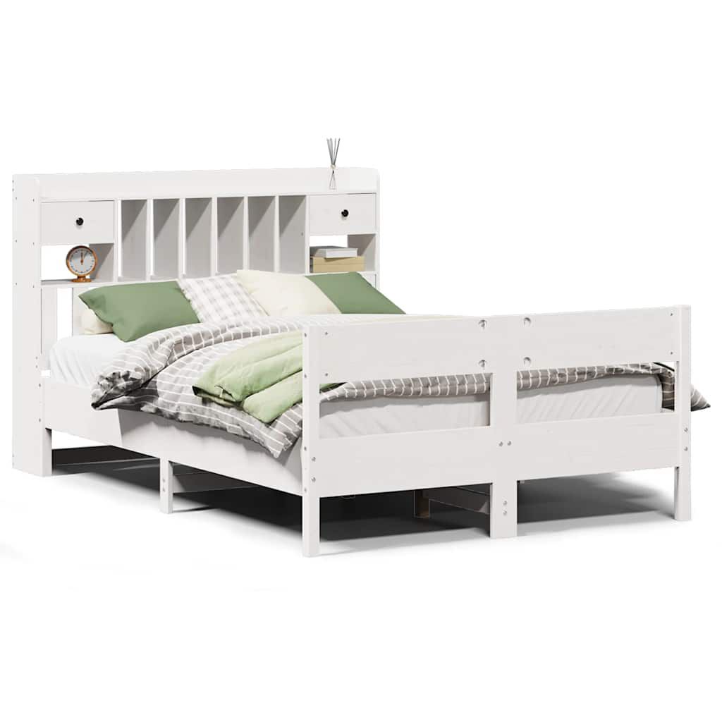 vidaXL Sänky kirjahyllyllä ei patjaa valkoinen 140x200 cm täysi mänty