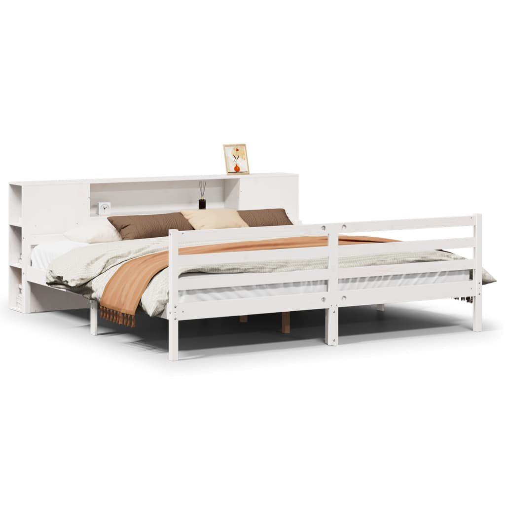 vidaXL Sänky kirjahyllyllä ei patjaa valkoinen 180x200 cm täysi mänty