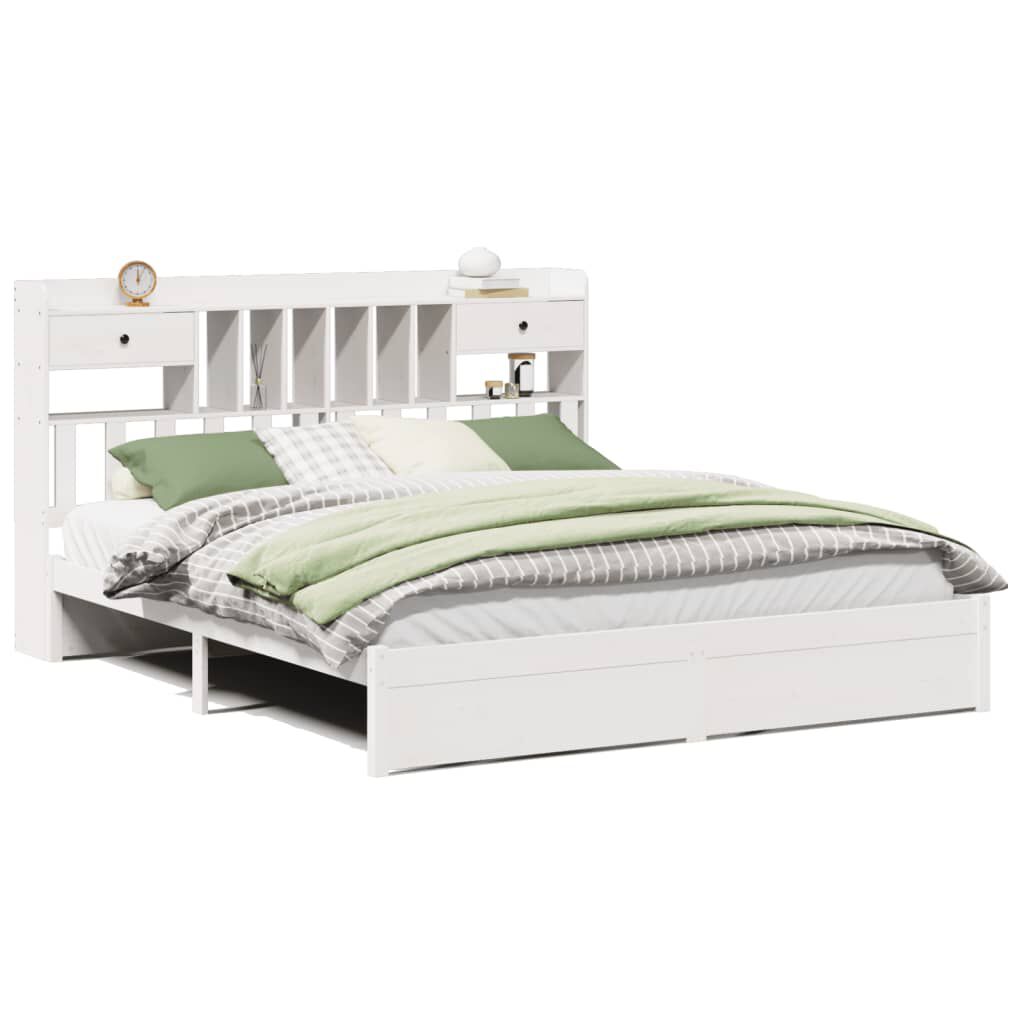 vidaXL Sänky kirjahyllyllä ei patjaa valkoinen 200x200 cm täysi mänty