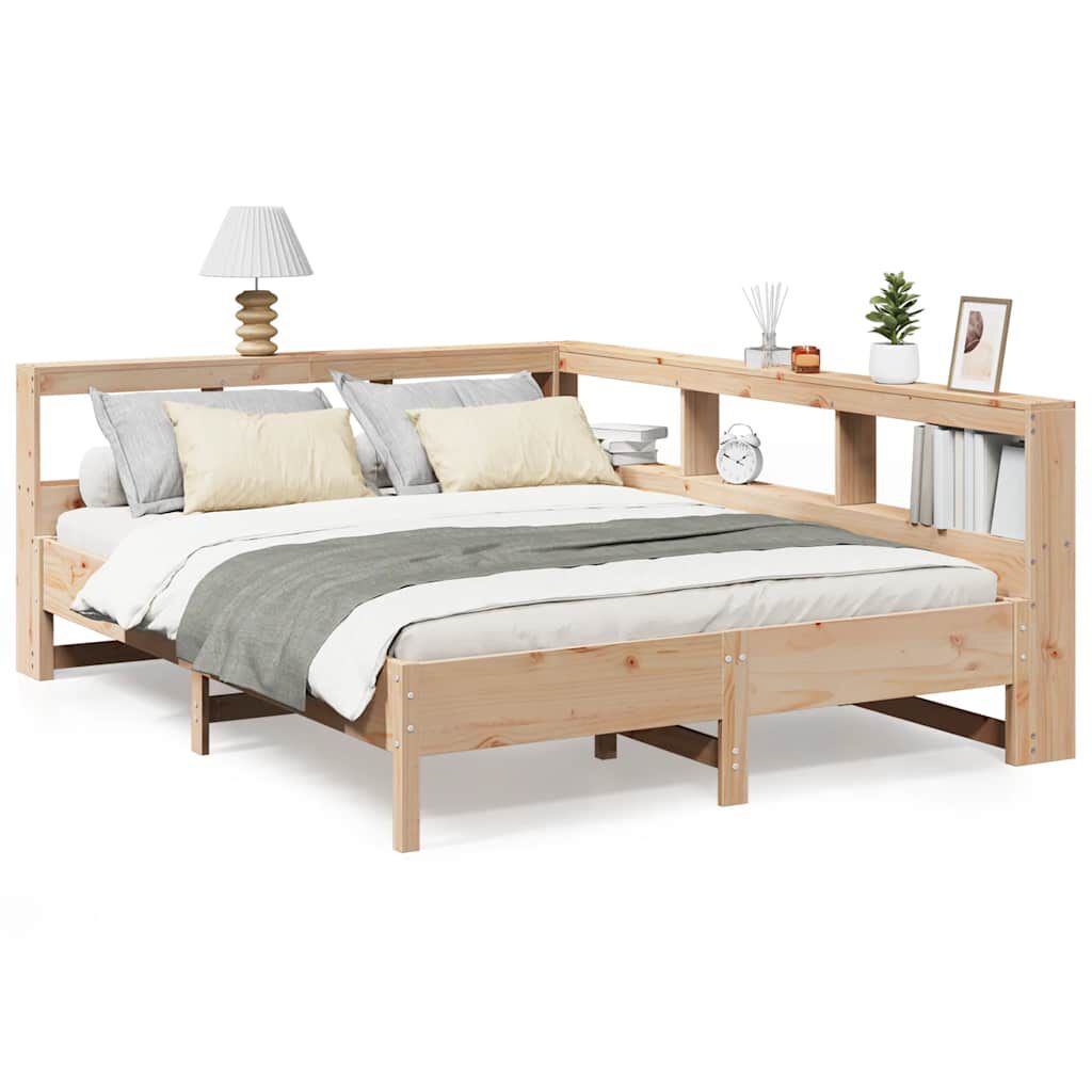 vidaXL Sänky kirjahyllyllä ilman patjaa 150x200 cm täysi mänty
