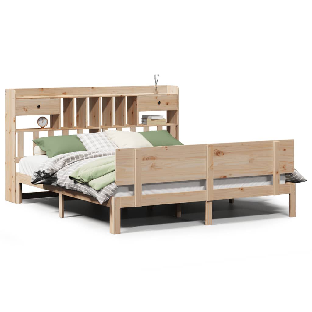 vidaXL Sänky kirjahyllyllä ilman patjaa 180x200 cm täysi mänty