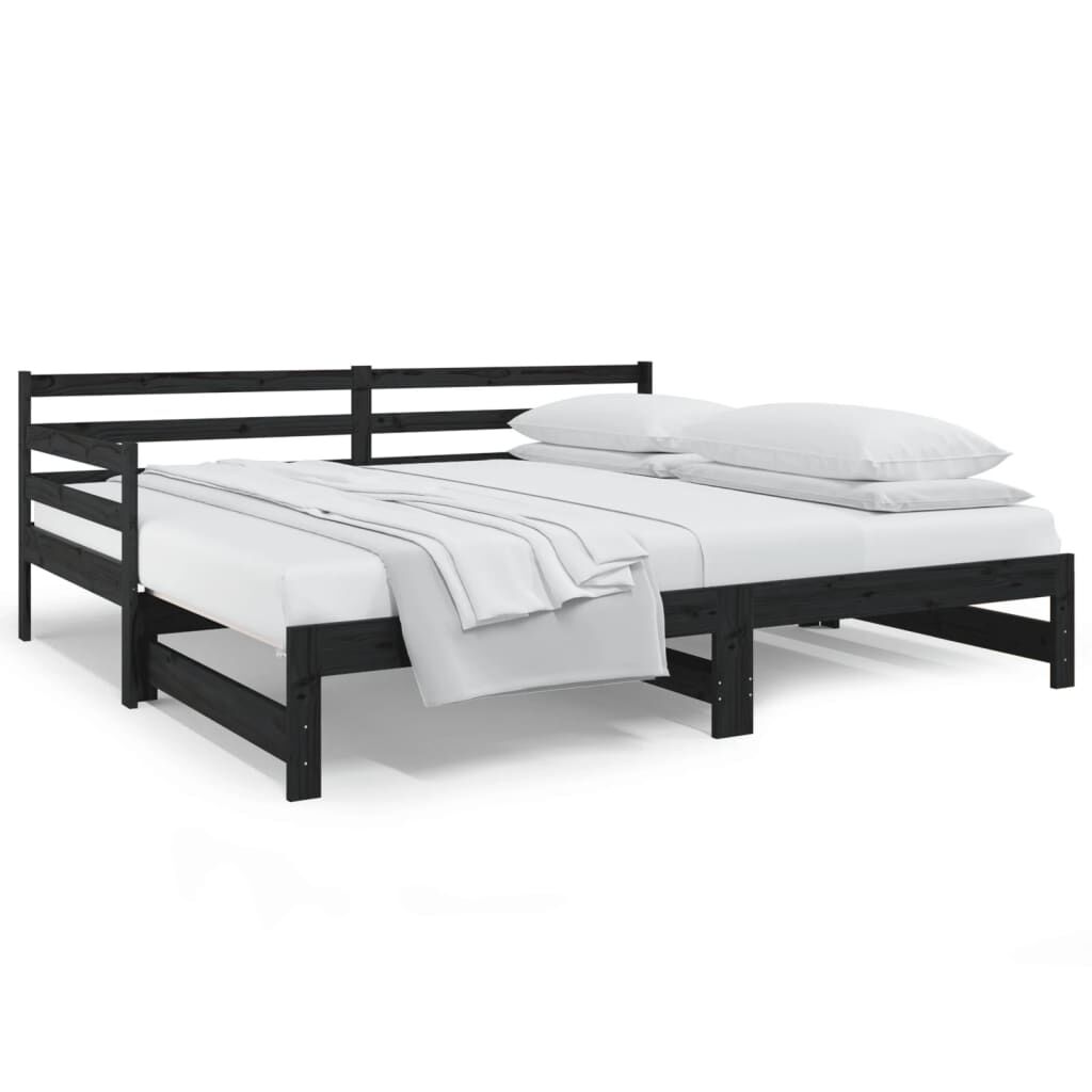 vidaXL Sohvasänky ulosvedettävä musta 2x (90x190) cm täysi mänty