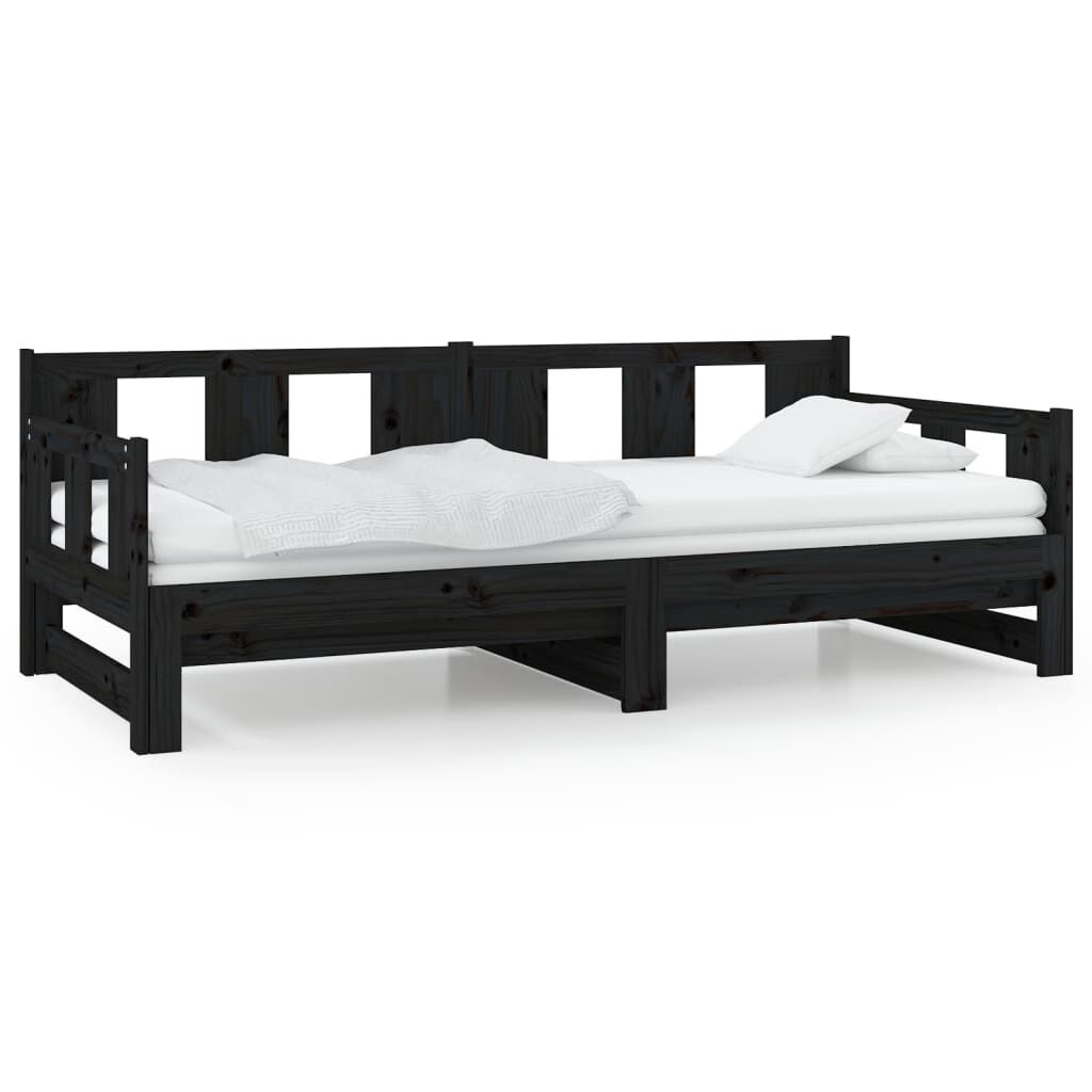 vidaXL Sohvasänky ulosvedettävä musta täysi mänty 2x (90x190) cm