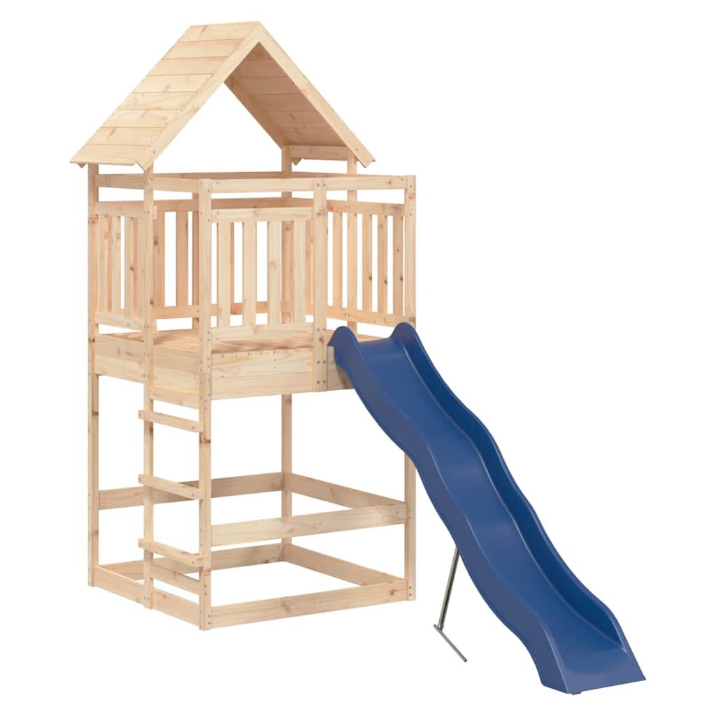 • Monitoimikeskus: Puisessa leikkikeskuksessa on 118 cm korkea taso, ja se erottuu edukseen aaltomaisella liukumäellä sekä hiekkalaatikolla. Pienokaisesi voivat kutsua myös ystäviään mukaan hauskanpitoon.
