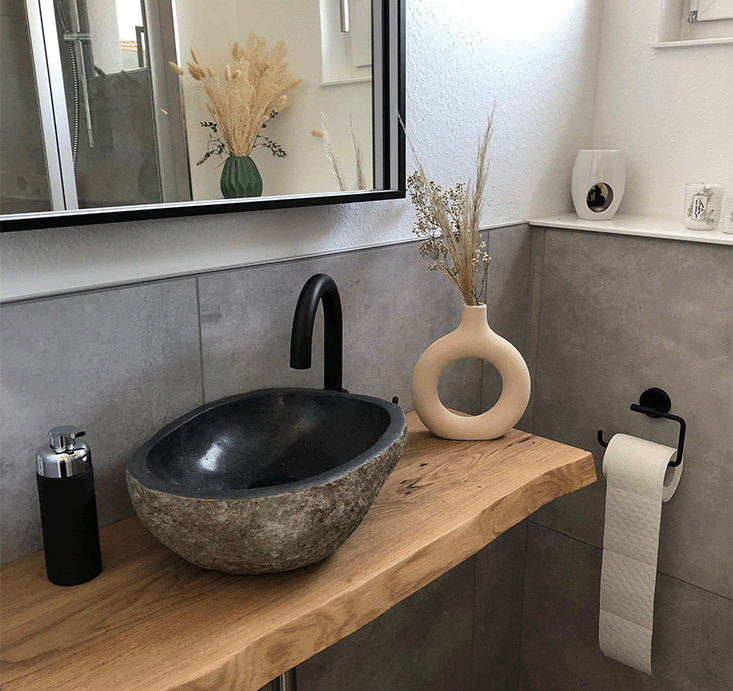 Kylpyhuone on enemmän kuin pelkkä toimiva tila, se on myös kangas luovuudelle. Siksi kylpyhuonevalikoimamme on iso osa haluamasi kylpyhuoneen suunnittelua Täältä löydät kaiken tarvitsemasi kylpyhuoneesi sisustukseen. Peilistä tai pesuallaskaapeista pyykinpesutarvikkeisiin, sieltä löytyy jotain jokaiseen tarpeeseen. Meiltä löytyy myös paljon kierrätetystä puusta valmistettuja kylpyhuonetarvikkeita. Älä unohda tärkeitä yksityiskohtia, kuten kylpyhuonevaa'at ja henkilökohtaisen hoidon tuotteita. Joten aloita, tee vaikutus ja luo täydellinen oma kylpyhuonekeitaasi!